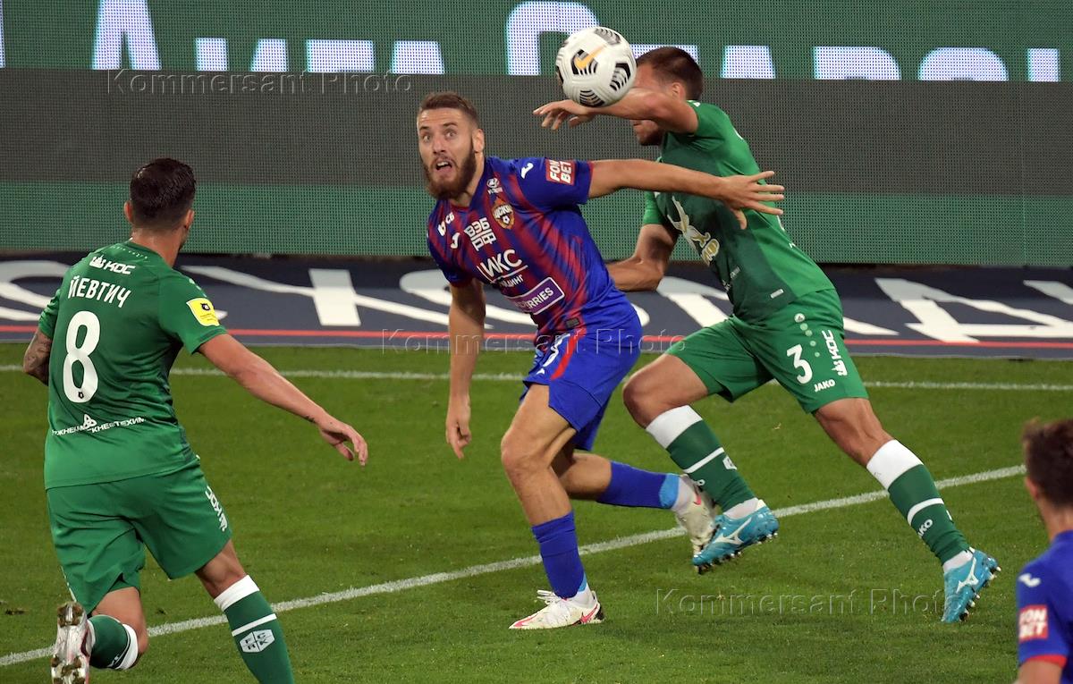 Российская Премьер-Лига (РПЛ). Чемпионат России по футболу 2020/2021. 4-й тур. Матч между командами ЦСКА (Москва) и "Рубин" (Казань) на стадионе "ВЭБ Арена". Игрок команды ЦСКА Никола Влашич (в центре) во время матча.