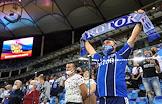 Российская Премьер-Лига (РПЛ). Тинькофф - Чемпионат России по футболу 2020/2021. 4-й тур. Матч между командами "Ротор" (Волгоград) - "Сочи" (Сочи) (1:2) на стадионе "Волгоград-Арена". Болельщики команды "Ротор" на трибуне во время матча.
