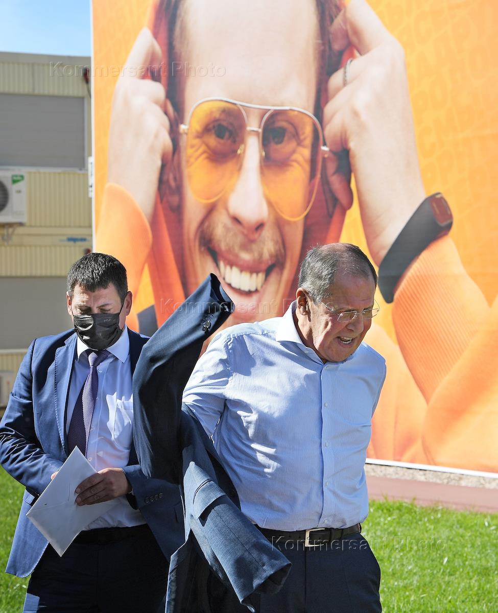 Всероссийский молодежный образовательный форум "Территория смыслов" на территории мастерской управления "Сенеж" в Солнечногорске. Министр иностранных дел России Сергей Лавров во время форума. Жанровая фотография.