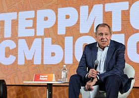 Всероссийский молодежный образовательный форум "Территория смыслов" на территории мастерской управления "Сенеж" в Солнечногорске. Встреча министра иностранных дел России Сергея Лаврова с участниками форума.