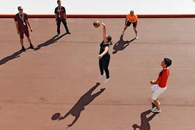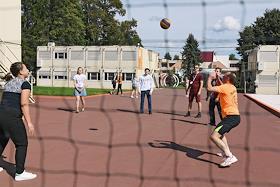 Всероссийский молодежный образовательный форум "Территория смыслов" на территории мастерской управления "Сенеж" в Солнечногорске. Участники форума на спортивной площадке.