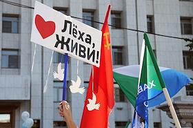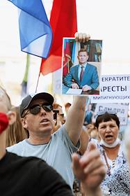 Митинг в поддержку бывшего губернатора Хабаровского края Сергея Фургала, обвиняемого в организации покушении на убийство и убийствах, и за расследование истории с отравлением оппозиционного политика Алексея Навального.