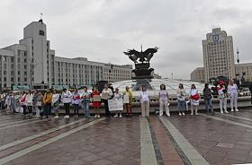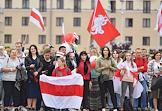 Ситуация в Минске. Акция протеста сторонников оппозиции на площади у Музейно-паркового комплекса "Победа". Со дня выборов президента Белоруссии 9 августа в Минске и других городах республики проходят массовые акции протеста несогласных с результатами голосования. Участники акции на фоне обелиска "Минск - город-герой".