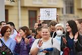 Ситуация в Минске. Акция протеста сторонников оппозиции на площади у Музейно-паркового комплекса "Победа". Со дня выборов президента Белоруссии 9 августа в Минске и других городах республики проходят массовые акции протеста несогласных с результатами голосования. Участники во время акции.