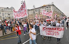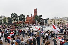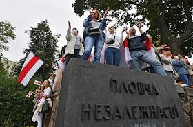 Ситуация в Минске. Акция протеста сторонников оппозиции на площади Независимости. Со дня выборов президента Белоруссии 9 августа в Минске и других городах республики проходят массовые акции протеста несогласных с результатами голосования.
