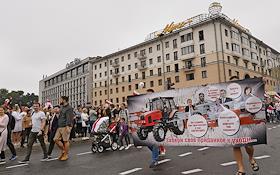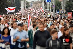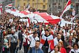 Ситуация в Минске. Акция протеста сторонников оппозиции. Участники акции во время шествия от площади Независимости к Музейно-парковому комплексу "Победа". Со дня выборов президента Белоруссии 9 августа в Минске и других городах республики проходят массовые акции протеста несогласных с результатами голосования.