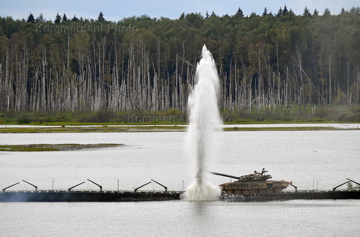 Армейские международные игры-2020 на полигоне Алабино. Переправа танков по понтонному мосту.