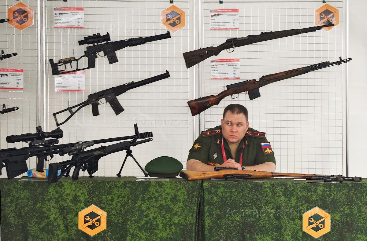 ARMY 2020 International Military-Technical Forum at the Patriot Convention and Exhibition Center. Small arms stand.