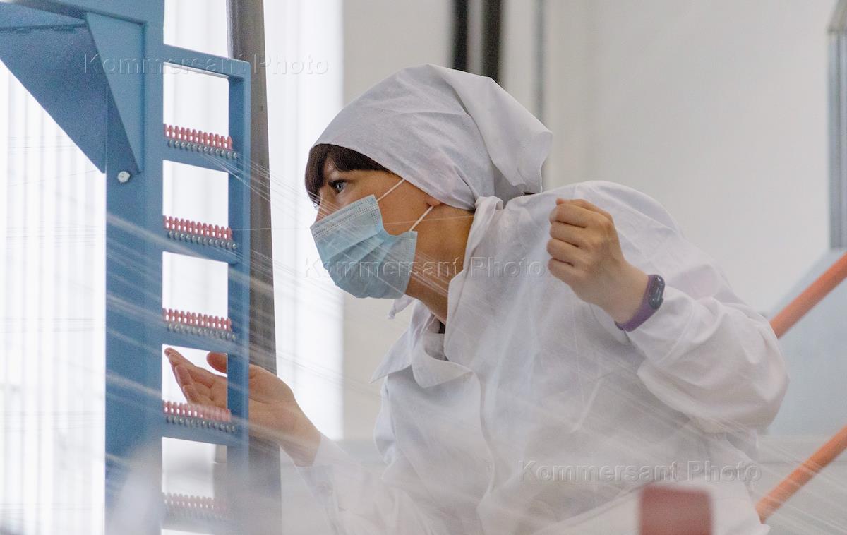Пресс-тур на Казанский вертолетный завод (КВЗ), приуроченный к 80-летию предприятия. Сотрудница предприятия за работой.