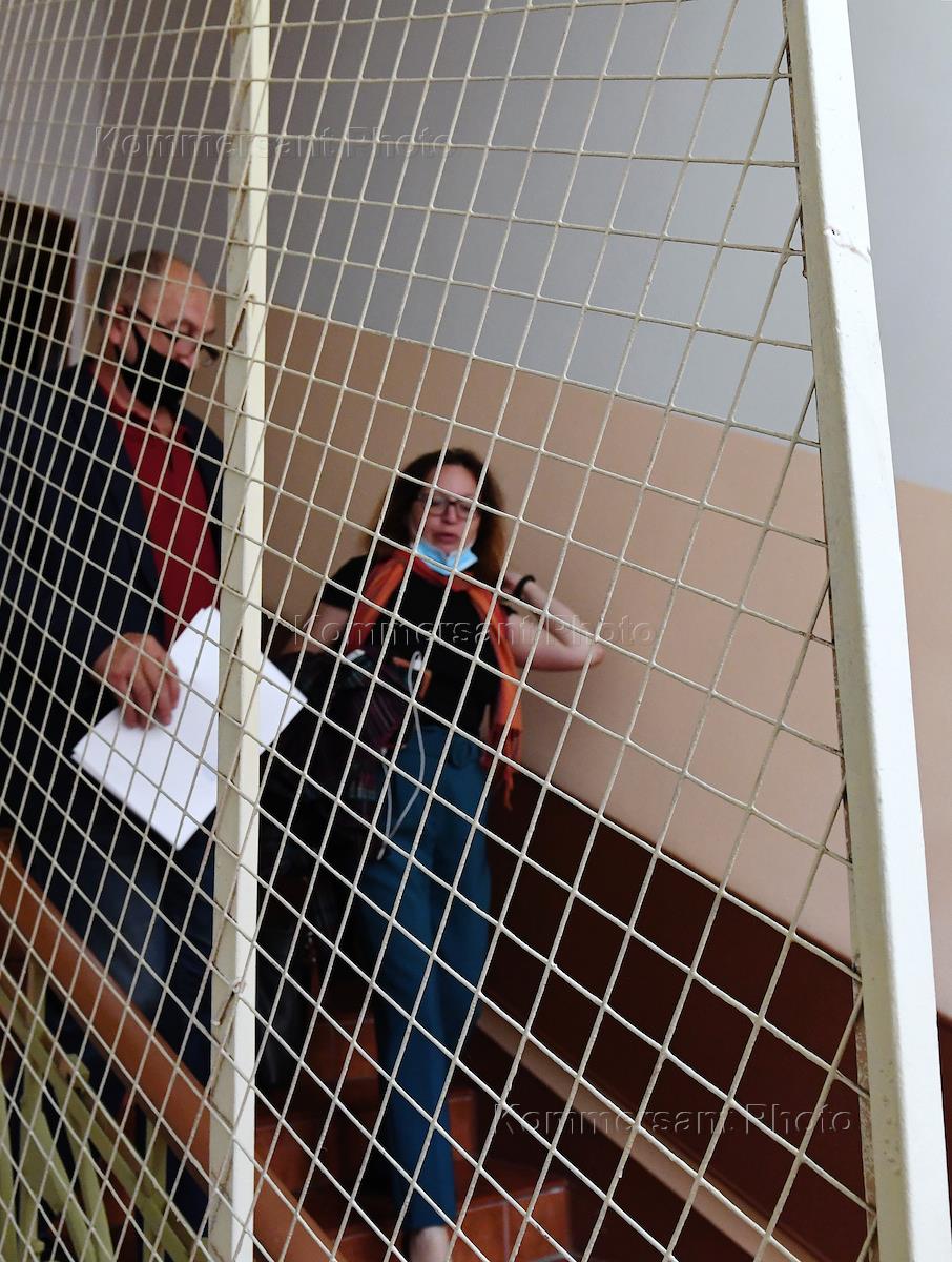 Kommersant's columnist on foreign affairs Marianna Belenkaya (right) is seen after the hearing in the Khamovnichesky District Court.