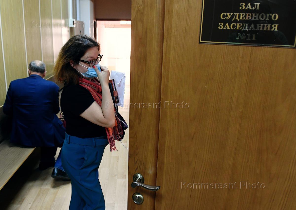 Обозреватель международного отдела газеты "Коммерсантъ" Марианна Беленькая перед началом заседания Хамовнического районного суда.