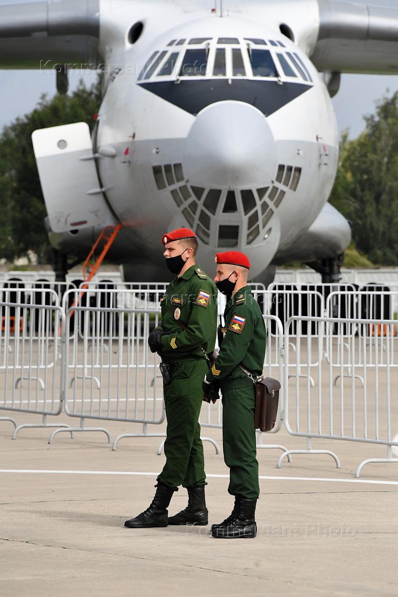 Международный военно-технический форум "АРМИЯ-2020" и армейские международные игры-2020. День военно-технического сотрудничества. Военнослужащие перед началом динамического показа авиатехники на аэродроме "Кубинка".