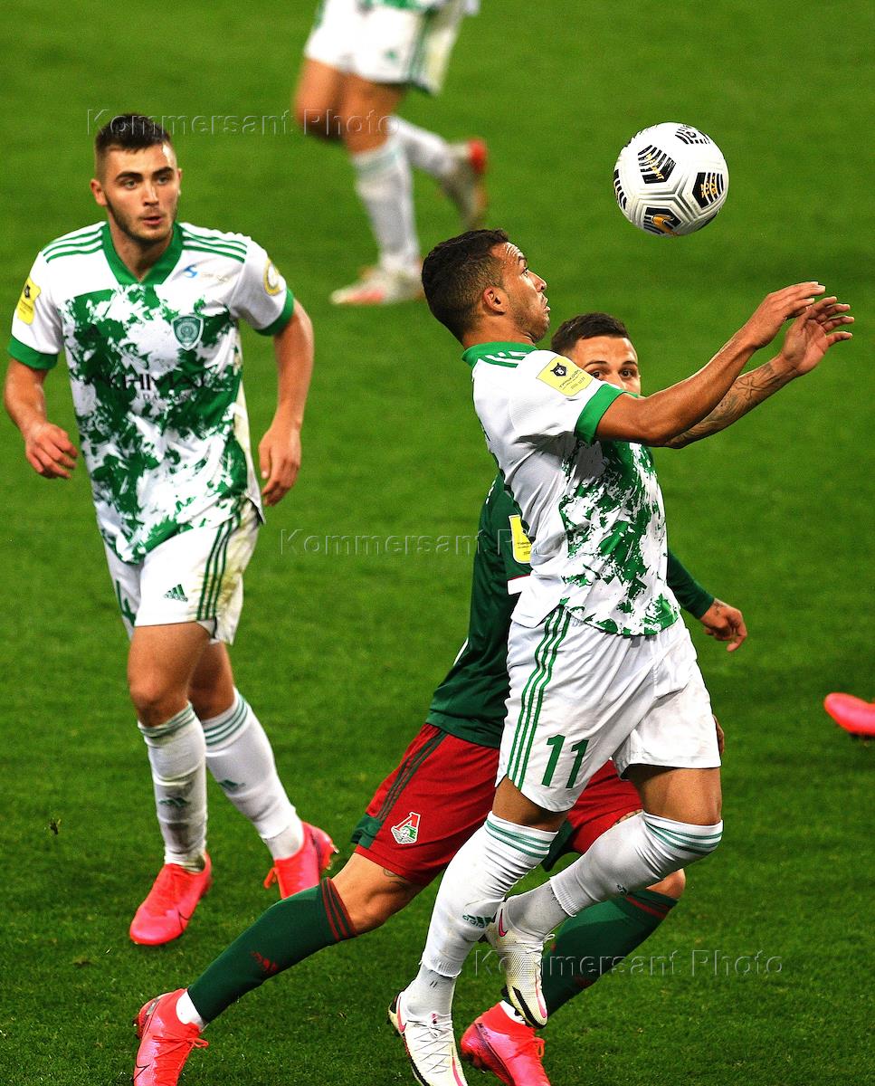 Tinkoff Russian Premier League (RPL). Russian Football Championship 2020/2021. Matchday 5. Match between Lokomotiv (Moscow) and Akhmat (Grozny) at the RZD Arena stadium. Akhmat goalkeeper Giorgi Shelia in action during the match.