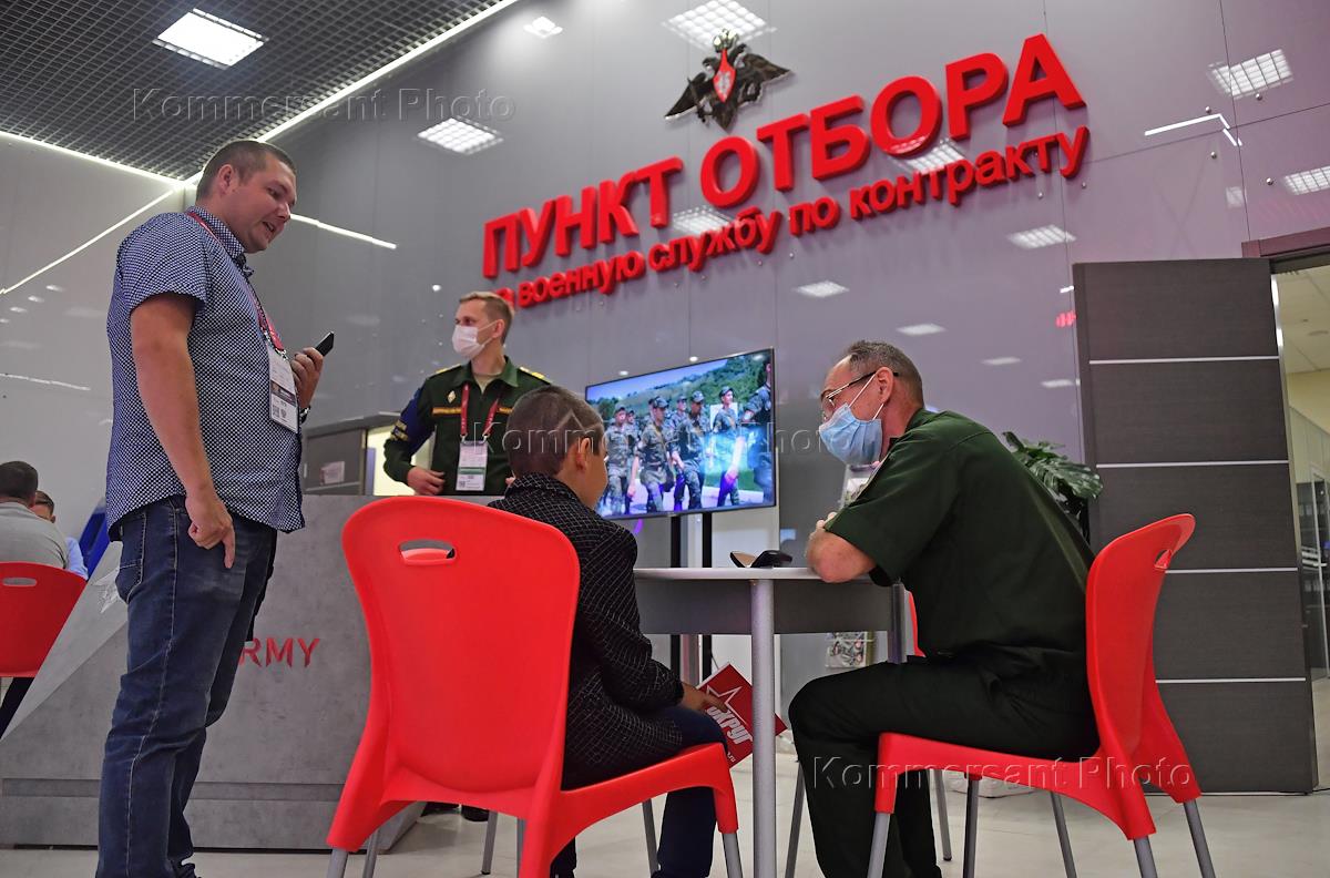 Международный военно-технический форум "АРМИЯ-2020" в конгрессно-выставочном центре "Патриот". Пункт отбора на военную службу по контракту.