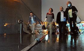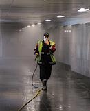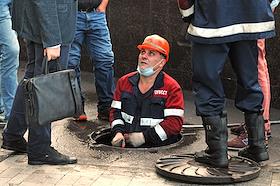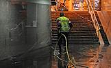 Aftermath of a downpour in Moscow. Pumping out water from a flooded underground passage.