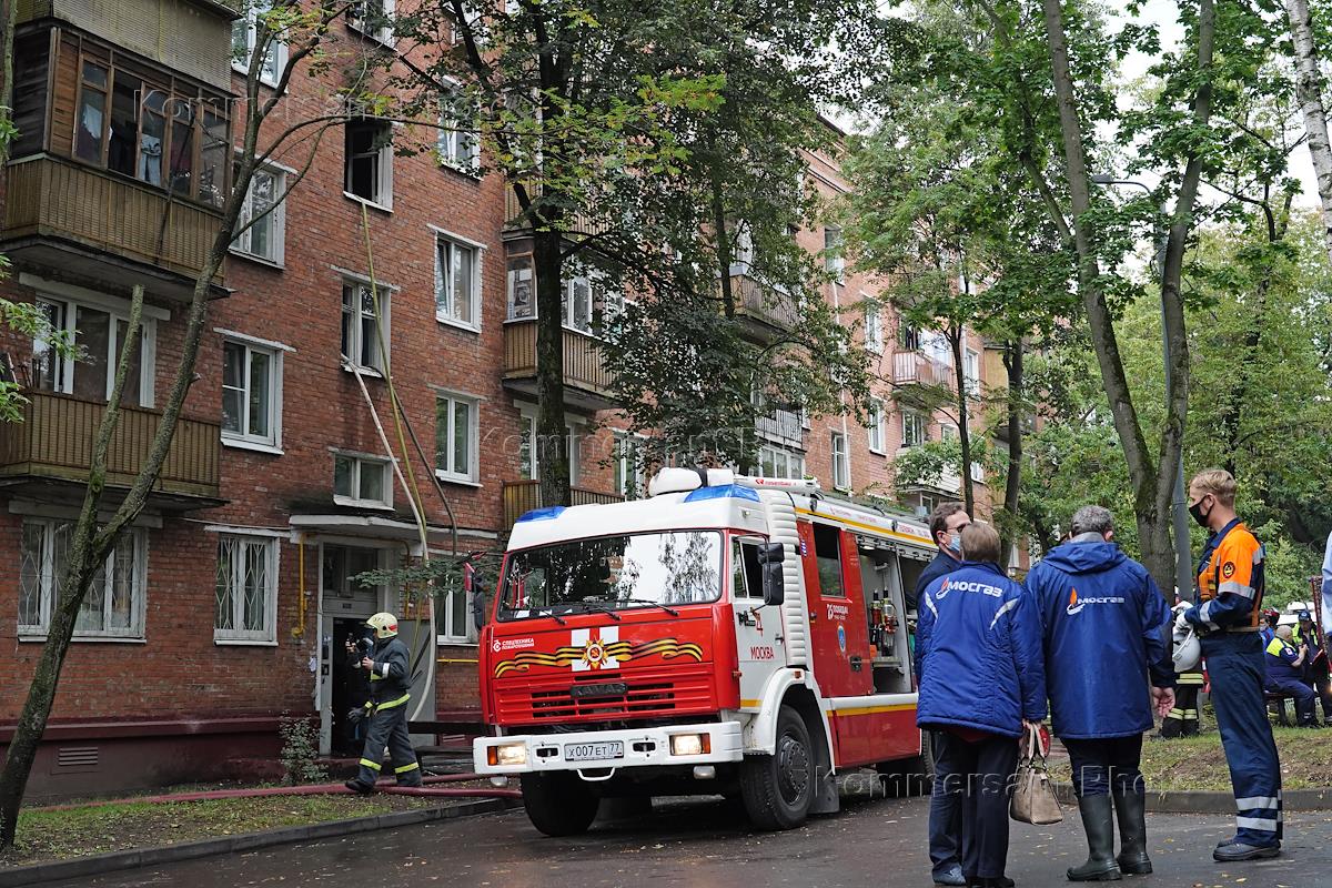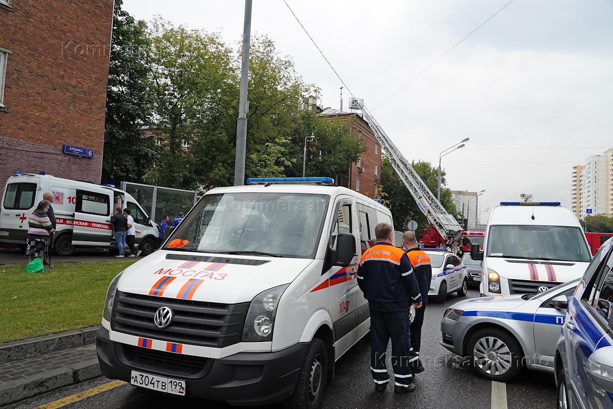 Последствия взрыва газа в жилом доме на улице Кубинка. Сотрудники Мосгаза на месте происшествия.