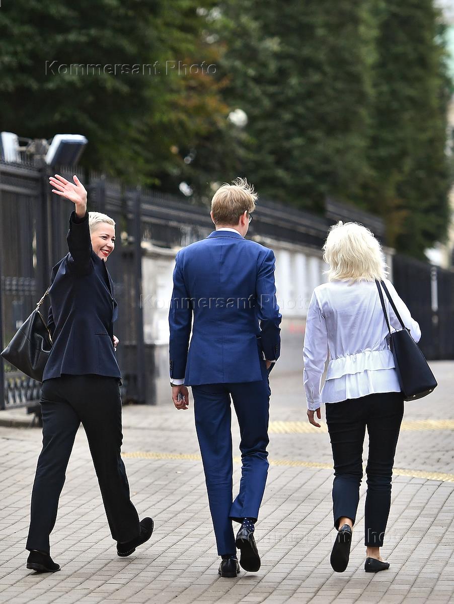 The political situation in Minsk. Member of the Belarusian Opposition Coordination Council Maria Kolesnikova (left) is seen at the building of the Investigative Committee of Belarus, where she was summoned as witnesses in the criminal case on the establishment of the Coordination Council.