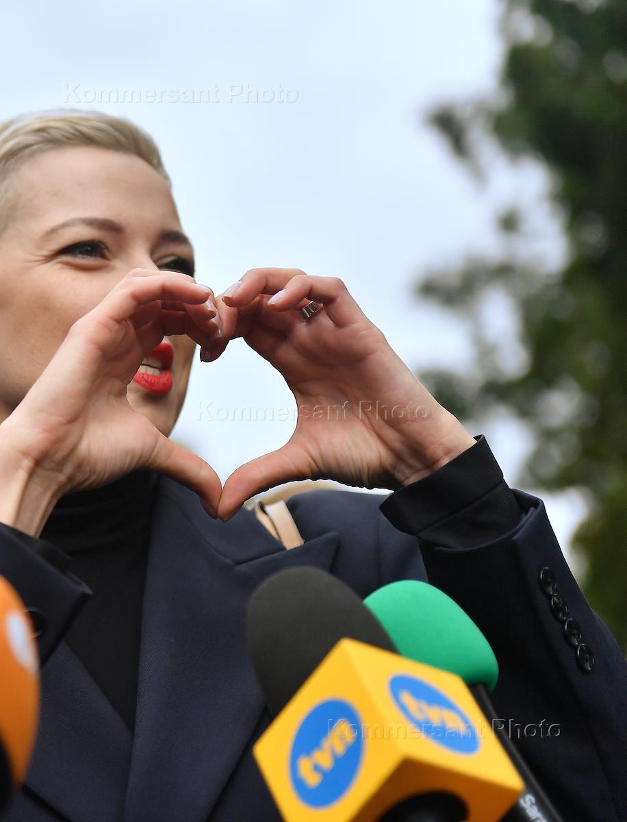 Политическая ситуация в Минске. Член координационного совета оппозиции Мария Колесникова (слева) у здания Следственного комитета Белоруссии, куда она была вызвана в качестве свидетеля по уголовному делу о создании координационного совета белорусской оппозиции.