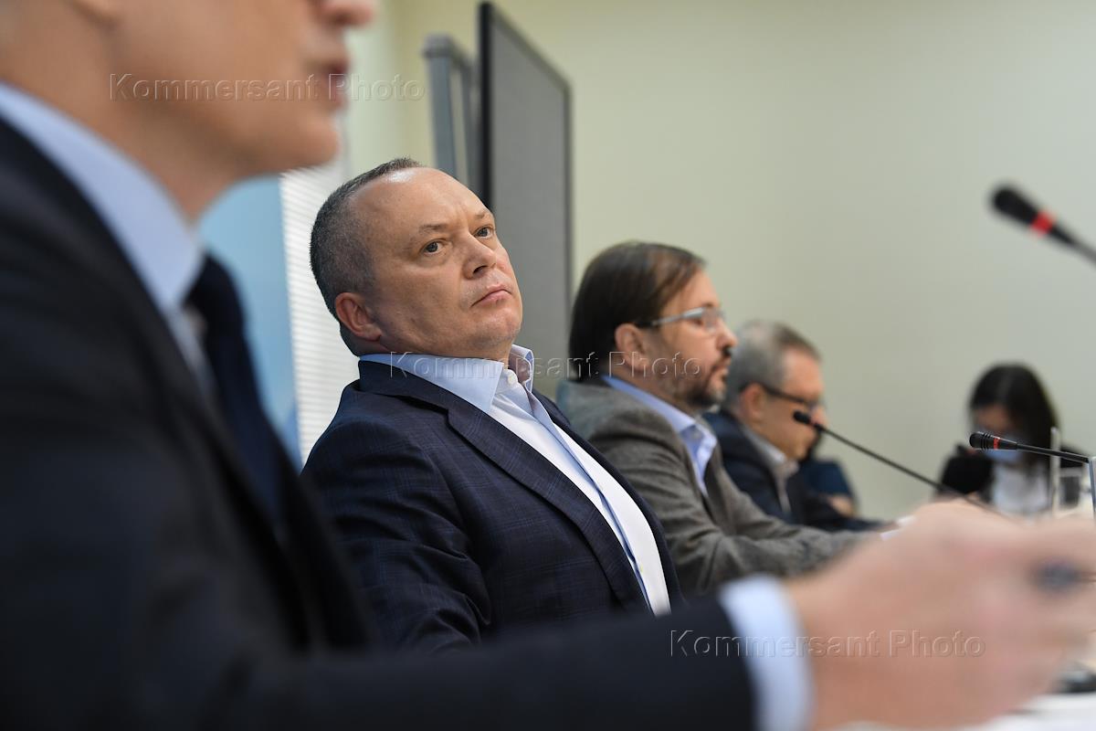 Round table "Single Voting Day 2020: scenarios of campaigns and forecast of results" was held in the The Foundation for Civil Society Development (FCSD). Head of the FCSD Konstantin Kostin (center) takes part in the round table.
