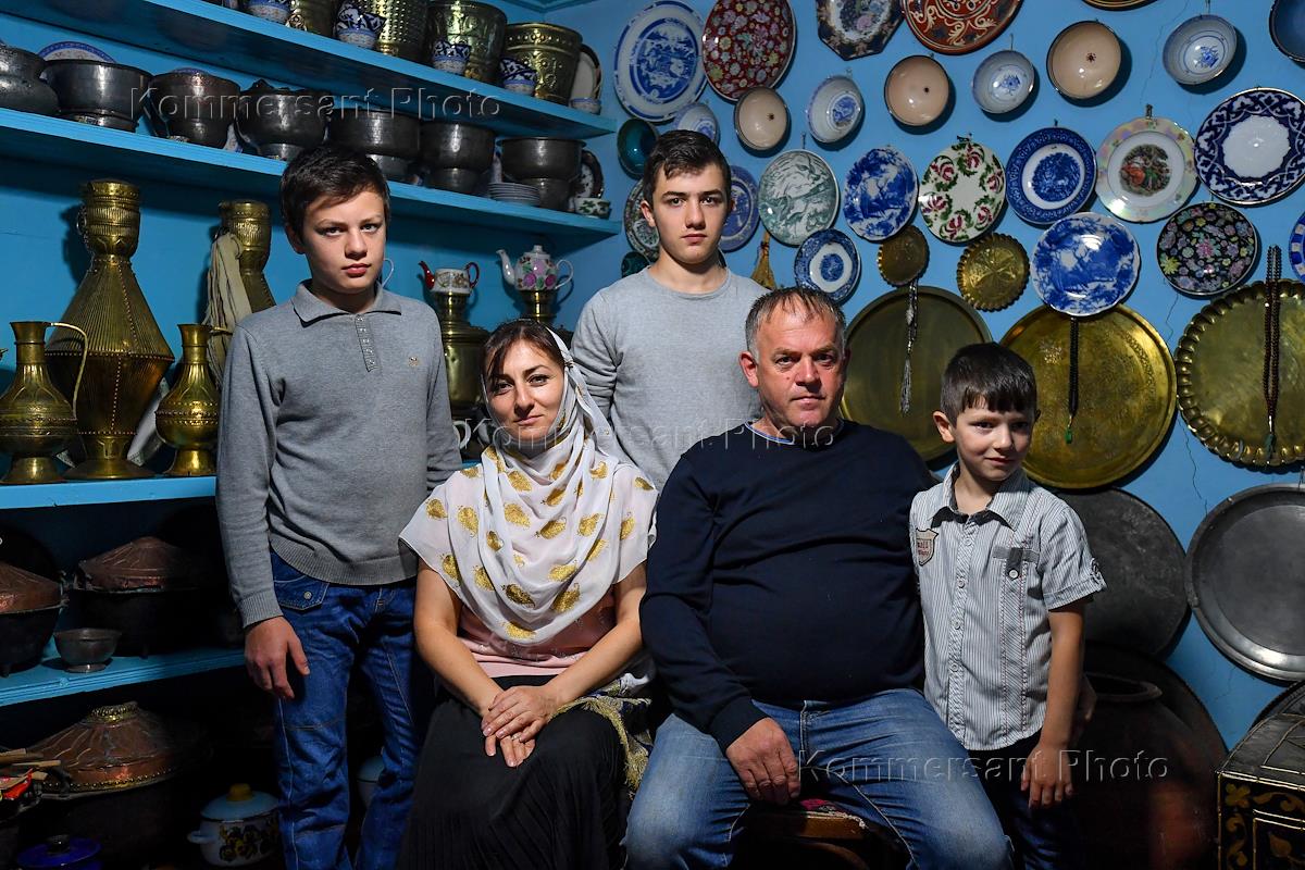 Виды Дагестана. Село Кубачи Дахадаевского района. Житель села Юнус с семьей.