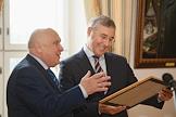 Церемония вручения премии правительства России за 2019 год в области науки и техники за разработку и реализацию механизмов структурной перестройки и технологического развития угольной промышленности России прошла в Государственном геологическом музее имени В.И.Вернадского. Министр науки и высшего образования России Валерий Фальков(справа) и президент Государственного геологического музея имени В.И.Вернадского Юрий Малышев (слева) во время церемонии.