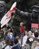 Политическая ситуация в Минске. Женская акция протеста. Со дня выборов президента Белоруссии 9 августа в Минске и других городах республики проходят массовые акции протеста несогласных с результатами голосования. Активистка Нина Багинская (слева) во время акции.