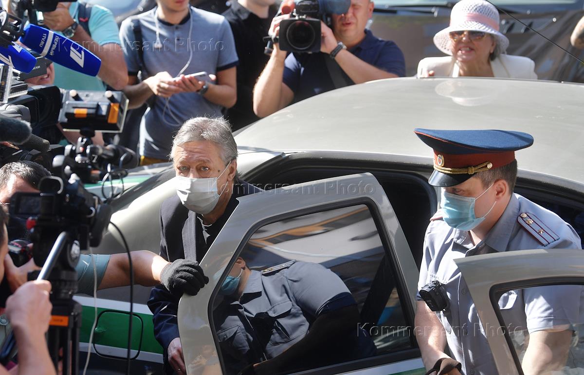 Рассмотрение по существу уголовного дела в отношении актера Михаила Ефремова о ДТП со смертельным исходом с участием актера в Пресненском районном суде. Вечером 8 июня на Садовом кольце Ефремов за рулем Jeep Grand Cherokee выехал на встречную полосу и столкнулся с автомобилем Lada, водитель которого впоследствии умер в больнице. Актер Михаил Ефремов перед началом заседания суда.