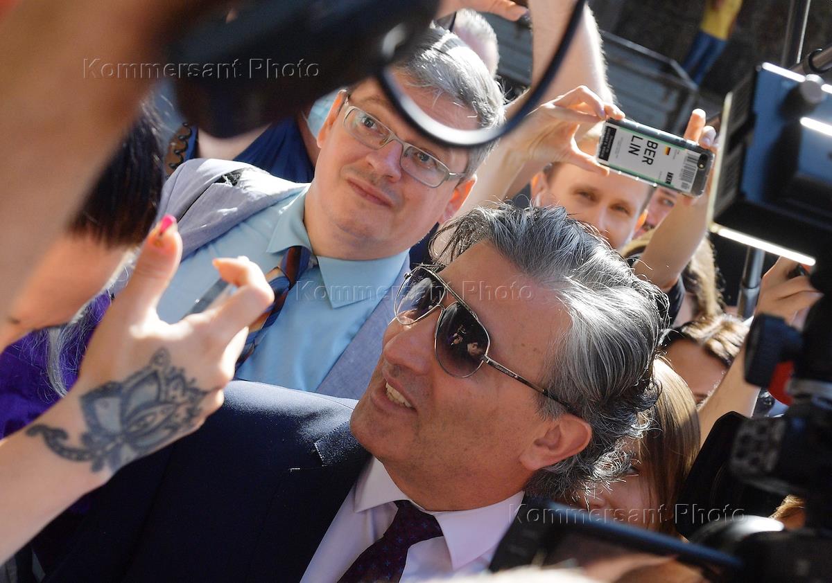 Рассмотрение по существу уголовного дела в отношении актера Михаила Ефремова о ДТП со смертельным исходом с участием актера в Пресненском районном суде. Вечером 8 июня на Садовом кольце Ефремов за рулем Jeep Grand Cherokee выехал на встречную полосу и столкнулся с автомобилем Lada, водитель которого впоследствии умер в больнице. Адвокат Михаила Ефремова Эльман Пашаев (в центре) перед началом заседания суда.