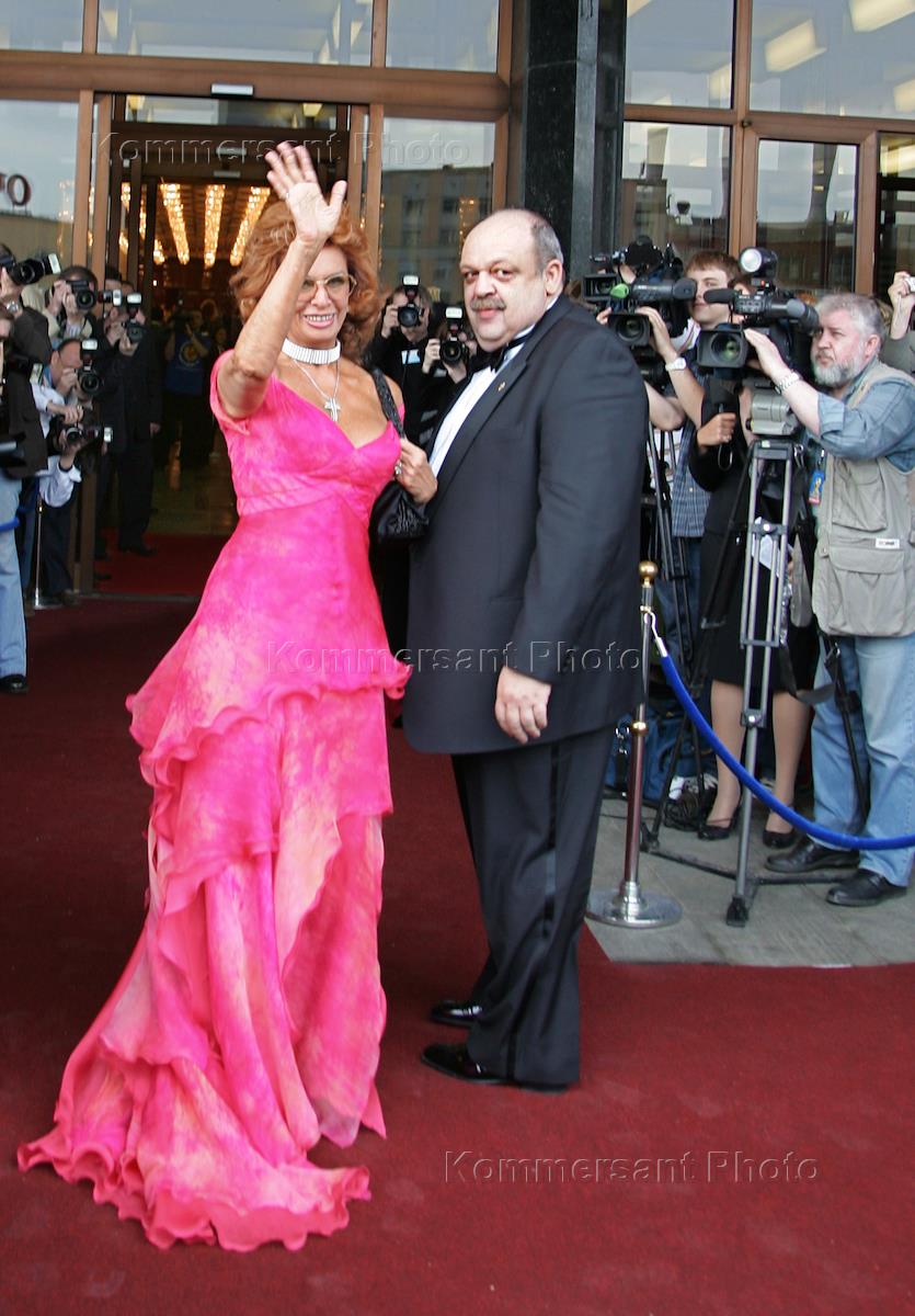 Телеведущий Яков Бранд (справа) и итальянская актриса Софи Лорен (слева) перед началом церемонии вручения Международной премии "Золотое Сердце". Премия учреждена для артистов кино "За служение высшим идеалам человечества". Церемония прошла в Государственном центральном концертном зале (ГЦКЗ) "Россия".