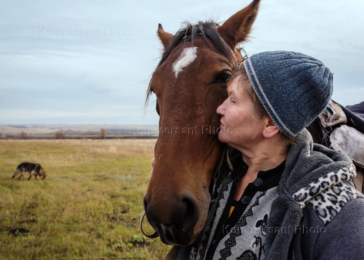 Жители Хвалынска. Жанровая фотография. Светлана Степанова - обладательница редкой профессии, она пастух. Вместе с мужем Светлана пасет буренок в селе Елшанка. А пастух без лошади никуда. Вот и появилась в семье скаковая лошадь Светка, названная в честь понятно кого. "Иной раз муж кричит: "Светка! Светка!" Я к нему бегу, а он: "Да это я не тебя, другую Светку" - смеется Светлана.