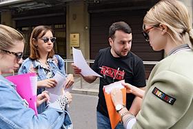 Подача обращения в приемную президента России в поддержку советника главы "Роскосмоса", бывшего специального корреспондента газет "Коммерсантъ" и "Ведомости" Ивана Сафронова. Журналисты (слева направо) Лиза Миллер, Ксения Миронова, Максим Иванов, Александра Джорджевич во время подачи обращений.