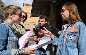 Подача обращения в приемную президента России в поддержку советника главы "Роскосмоса", бывшего специального корреспондента газет "Коммерсантъ" и "Ведомости" Ивана Сафронова. Журналисты (слева направо) Лиза Миллер, Александра Джорджевич, Максим Иванов и Ксения Миронова во время подачи обращений