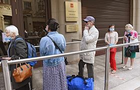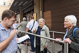 Подача обращения в приемную президента России в поддержку советника главы "Роскосмоса", бывшего специального корреспондента газет "Коммерсантъ" и "Ведомости" Ивана Сафронова. Жанровая фотография. Значок с портретом Ивана Сафронова "ШпионоВания".