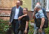 Генерал-лейтенант Александр Дуплинский (в центре), обвиняемый в махинациях с жильем, после окончания заседания Московского гарнизонного военного суда.