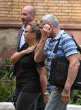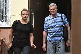 Генерал-лейтенант Александр Дуплинский (справа), обвиняемый в махинациях с жильем, после окончания заседания Московского гарнизонного военного суда.