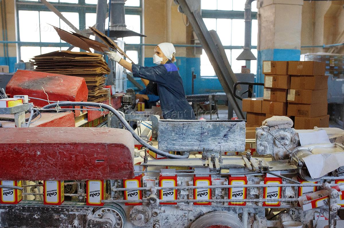 АО "Башкирская содовая компания". Сотрудница предприятия во время работы в цехе упаковки пищевой соды.