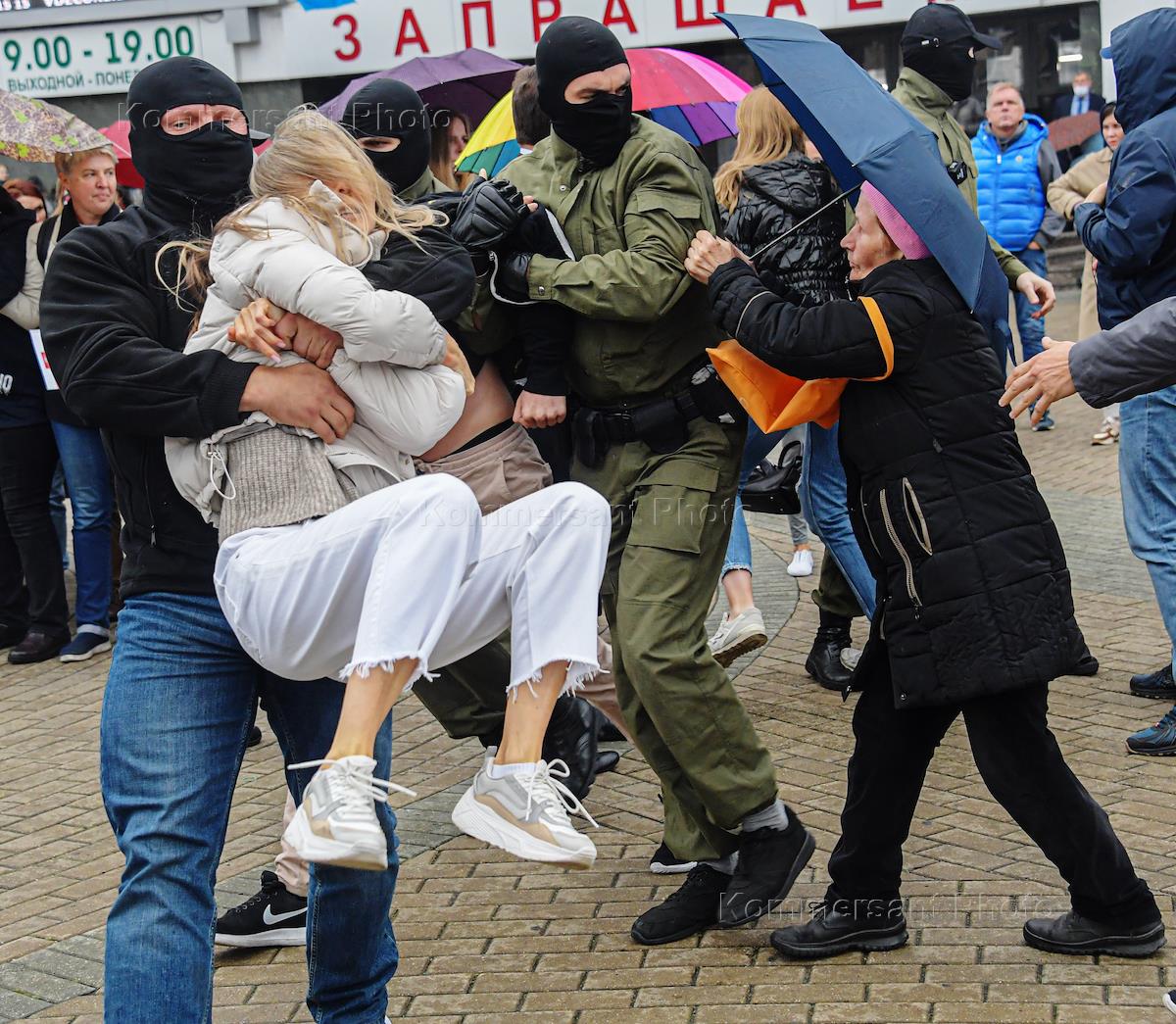 Политическая ситуация в Минске. Митинг в поддержку члена Координационного совета (КС) оппозиции Белоруссии Марии Колесниковой возле Комаровского рынка. Сотрудники правоохранительных органов во время задержания участников митинга.