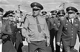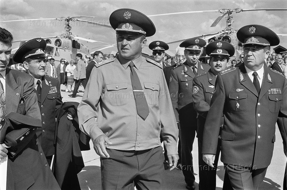 Церемония открытия Международного авиа-космического салона "МАКС-95" в Жуковском. Министр обороны России Павел Грачев (в центре) на церемонии.