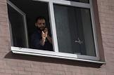 Политическая ситуация в Минске. Сотрудник штаба бывшего кандидата в президенты Белоруссии Виктора Бабарико в окне офиса.