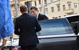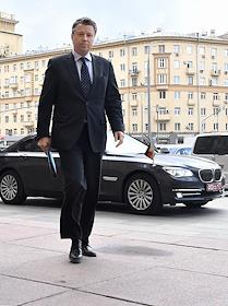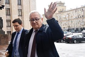 Заместитель министра иностранных дел (МИД) России Сергей Рябков (справа) у здания МИДа на Смоленской площади.