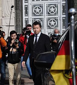 Посол Германии в России Геза Андреас фон Гайр (слева) у здания Министерства иностранных дел России, куда он был приглашен для беседы в связи с ситуацией вокруг оппозиционера Алексея Навального.