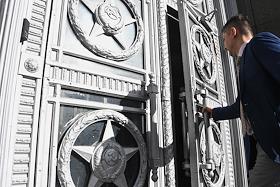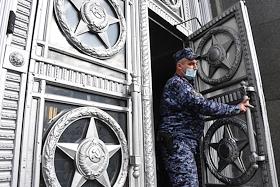 Жанровая фотография. Вход в здание министерства иностранных дел (МИД) России на Смоленской площади.