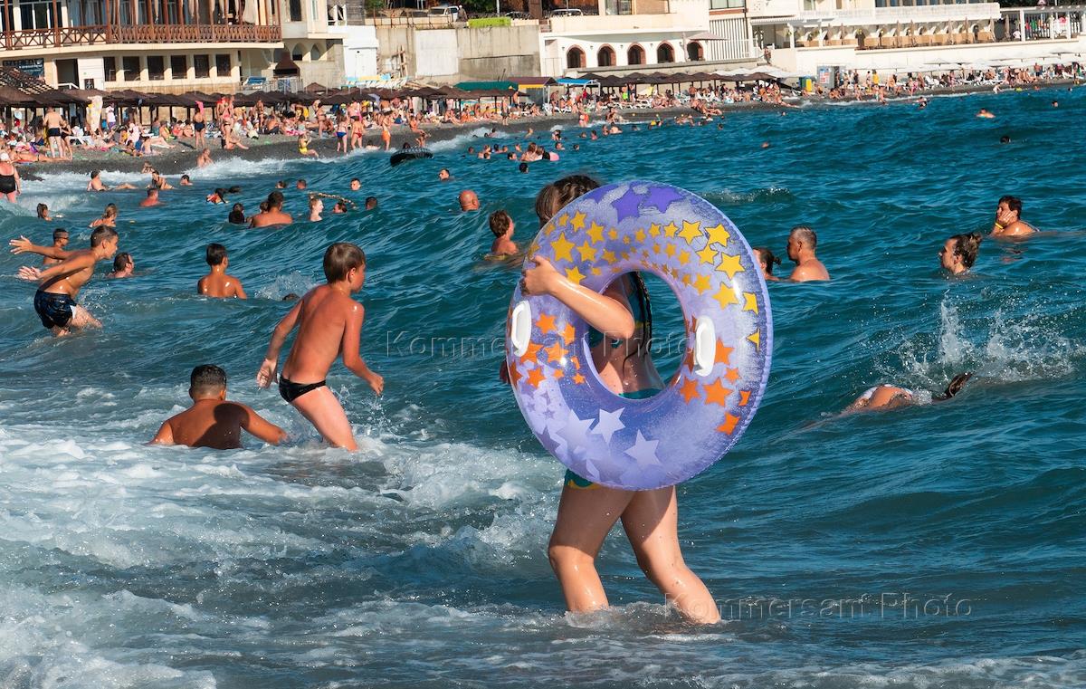 Жанровая фотография. Отдыхающие на пляже Черного моря.