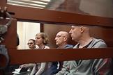 Заседание по делу акушеров-гинекологов, подозреваемых в торговле детьми, в Басманном районном суде. Слева направо: врачи-гинекологи Лилия Панаиоти, Юлианна Иванова, врач-эмбриолог Тарас Ашитков и генеральный директор центра суррогатного материнства Владислав Мельников во время заседания суда.