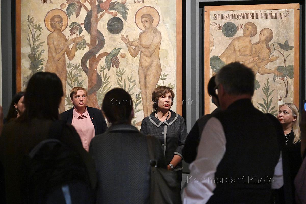 Пресс-показ выставки "Калязин. Фрески затопленного монастыря" в Государственном музее архитектуры имени Щусева.
