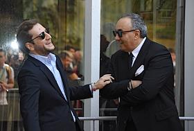 XXXI Российский Открытый кинофестиваль "Кинотавр". День первый. Церемония открытия. Режиссер Резо Гигинеишвили (слева) и президент "Кинотавра", продюсер Александр Роднянский (справа) перед началом церемонии.