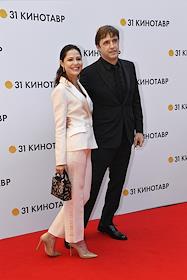 XXXI Российский Открытый кинофестиваль "Кинотавр". День первый. Церемония открытия. Актер Юрий Борисов (слева) с супругой перед началом церемонии.