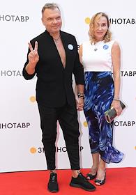 XXXI Российский Открытый кинофестиваль "Кинотавр". День первый. Церемония открытия. Актер Анатолий Белый (слева) с супругой Инессой Москвичевой (справа) перед началом церемонии.