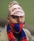Российская Премьер-Лига (РПЛ). Тинькофф - Чемпионат России по футболу 2020/2021. 7-й тур. Матч между командами ЦСКА (Москва) и "Спартак" (Москва) на стадионе "ВЭБ Арена". Болельщик команды ЦСКА с маской на лице.