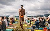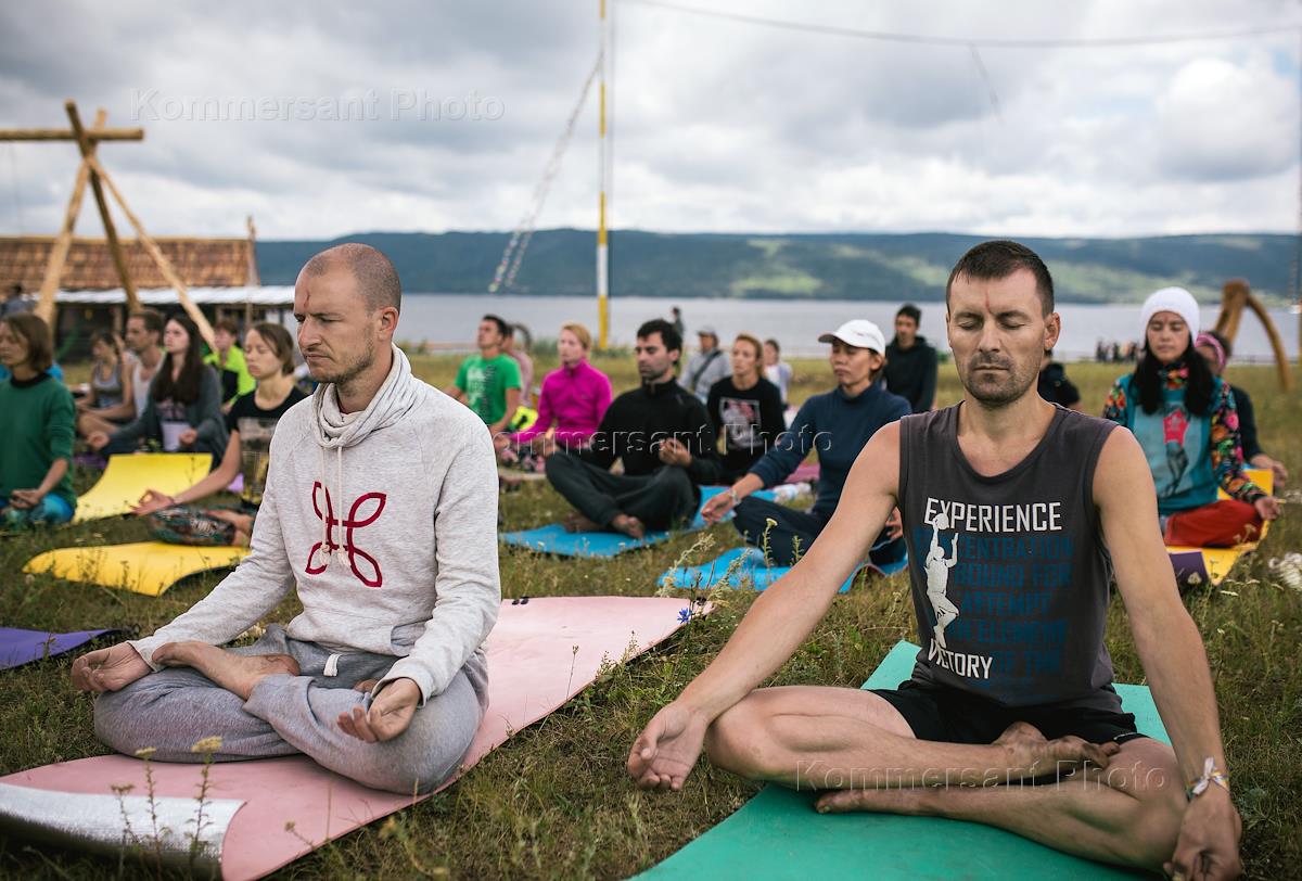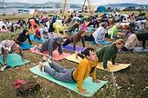 Фестиваль "Иная" (INAYA) прошел на берегу Нугушского водохранилища. Участники фестиваля во время занятий йогой.